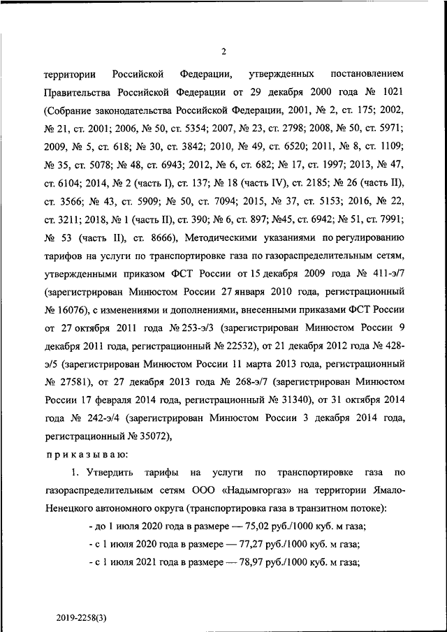 "ОБ УТВЕРЖДЕНИИ ТАРИФОВ НА УСЛУГИ ПО ТРАНСПОРТИРОВКЕ ГАЗА ПО