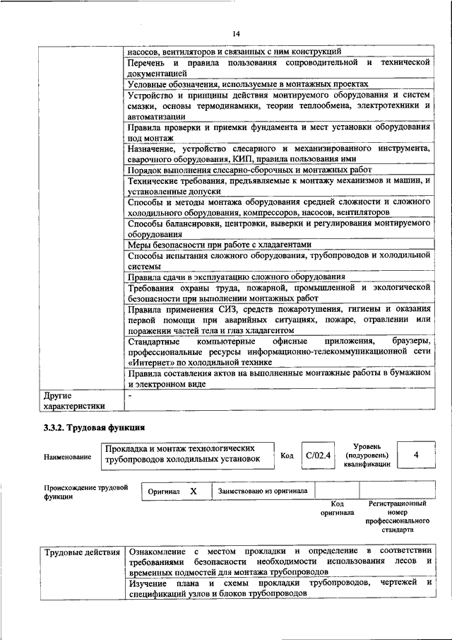 "ОБ УТВЕРЖДЕНИИ ПРОФЕССИОНАЛЬНОГО СТАНДАРТА "МОНТАЖНИК ОБОРУДОВАНИЯ ХОЛОДИЛЬНЫХ УСТАНОВОК"