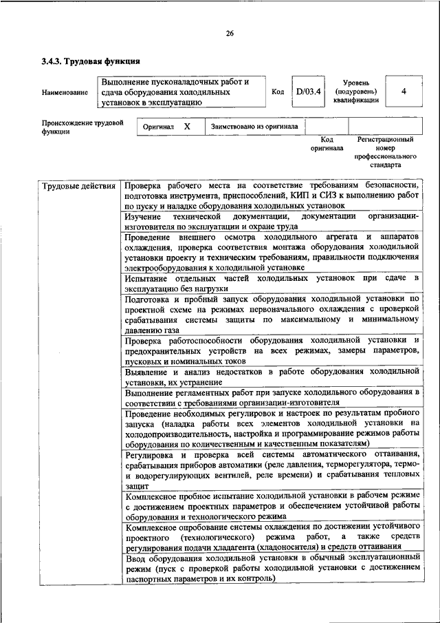"ОБ УТВЕРЖДЕНИИ ПРОФЕССИОНАЛЬНОГО СТАНДАРТА "МОНТАЖНИК ОБОРУДОВАНИЯ ХОЛОДИЛЬНЫХ УСТАНОВОК"