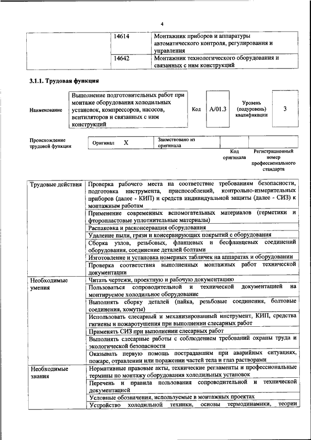 "ОБ УТВЕРЖДЕНИИ ПРОФЕССИОНАЛЬНОГО СТАНДАРТА "МОНТАЖНИК ОБОРУДОВАНИЯ ХОЛОДИЛЬНЫХ УСТАНОВОК"
