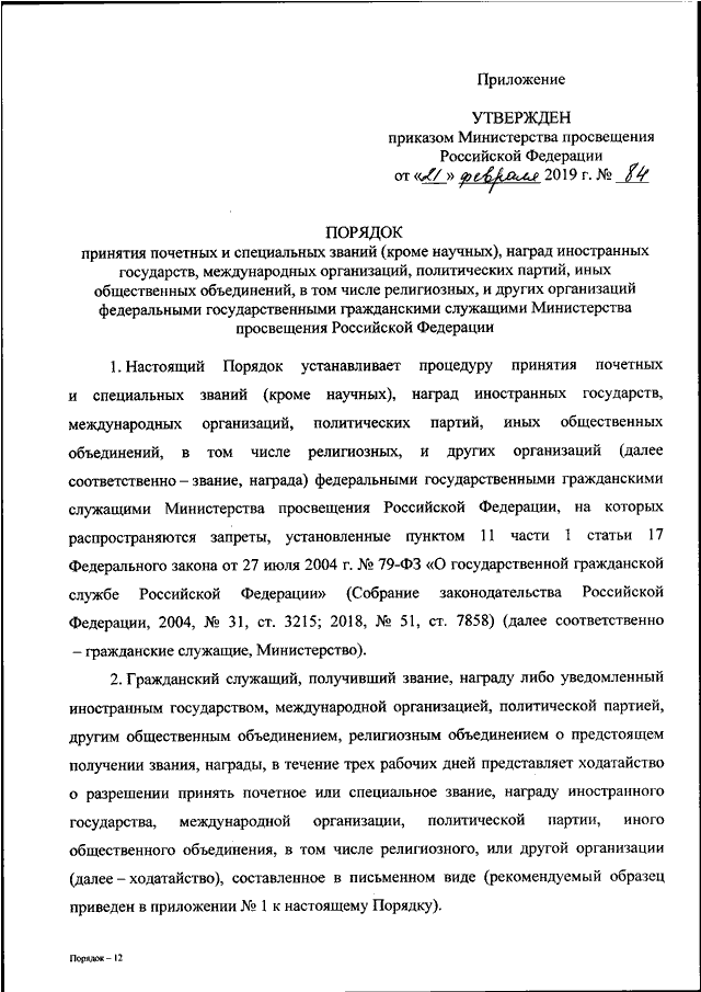 ПРИКАЗ Минпросвещения России от 21.02.2019 N 84