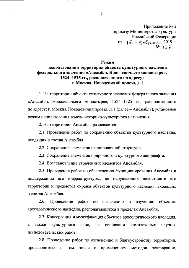 ПРИКАЗ Минкультуры РФ от 15.02.2019 N 157