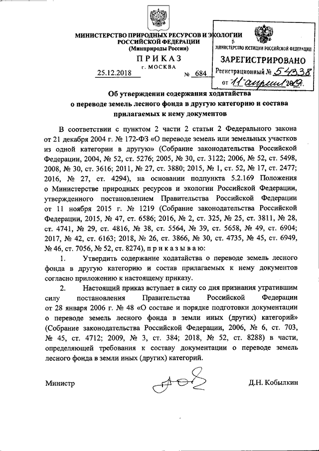 ПРИКАЗ Минприроды РФ от 25.12.2018 N 684