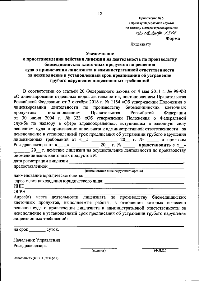 ПРИКАЗ Росздравнадзора от 25.02.2019 N 1318