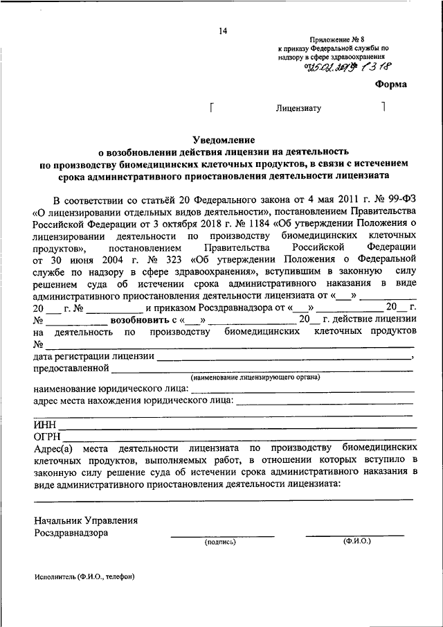 ПРИКАЗ Росздравнадзора от 25.02.2019 N 1318