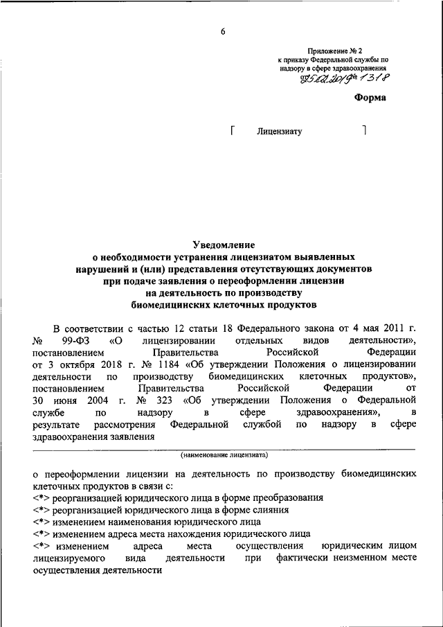 ПРИКАЗ Росздравнадзора от 25.02.2019 N 1318
