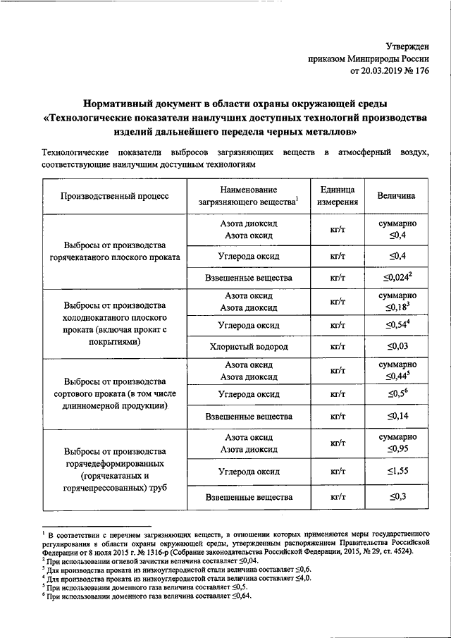 "ОБ УТВЕРЖДЕНИИ НОРМАТИВНОГО ДОКУМЕНТА В ОБЛАСТИ ОХРАНЫ ОКРУЖАЮЩЕЙ СРЕДЫ "ТЕХНОЛОГИЧЕСКИЕ ПОКАЗАТЕЛИ НАИЛУЧШИХ ДОСТУПНЫХ ТЕХНОЛОГИЙ ПРОИЗВОДСТВА ИЗДЕЛИЙ ДАЛЬНЕЙШЕГО ПЕРЕДЕЛА ЧЕРНЫХ МЕТАЛЛОВ"