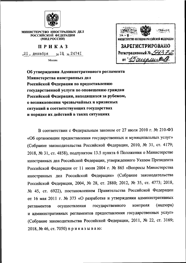 ПРИКАЗ МИД РФ от 21.12.2018 N 24741