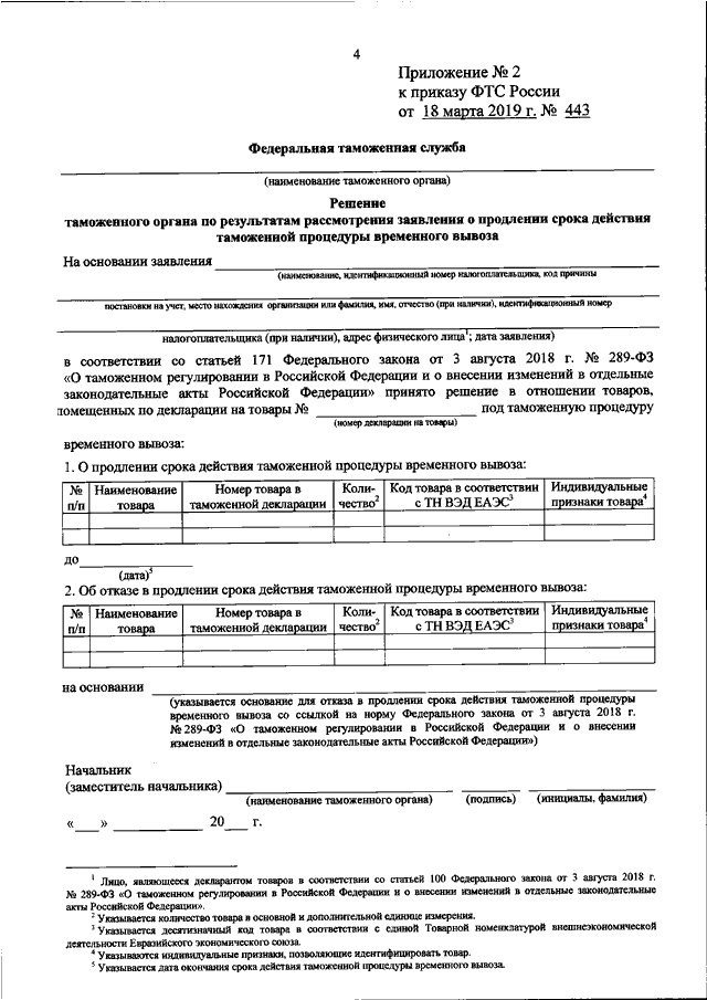 ПРИКАЗ ФТС РФ от 18.03.2019 N 443
