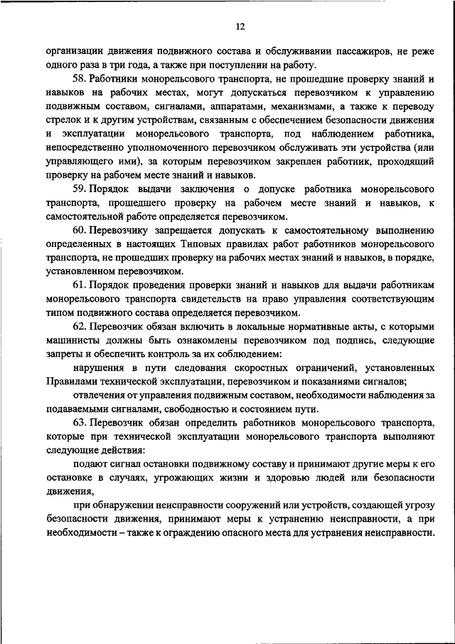 "ОБ УТВЕРЖДЕНИИ ТИПОВЫХ ПРАВИЛ ТЕХНИЧЕСКОЙ ЭКСПЛУАТАЦИИ МОНОРЕЛЬСОВОГО ТРАНСПОРТА"