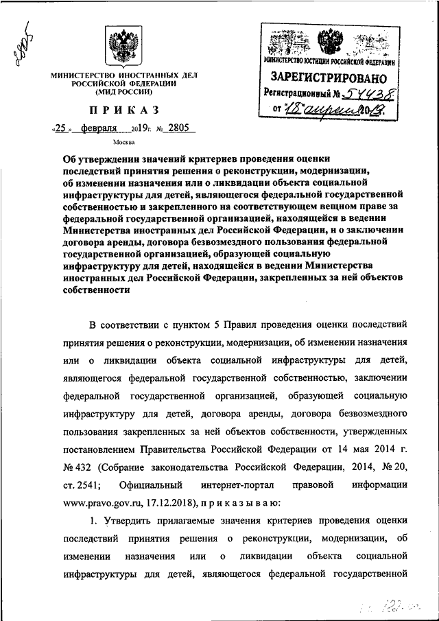 ПРИКАЗ МИД РФ от 25.02.2019 N 2805