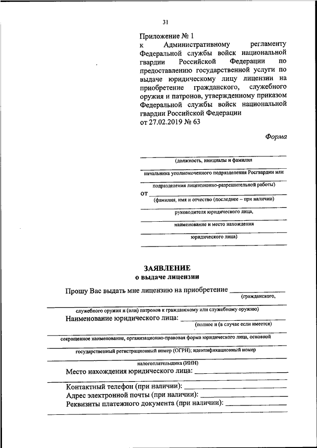 ПРИКАЗ Росгвардии от 27.02.2019 N 63