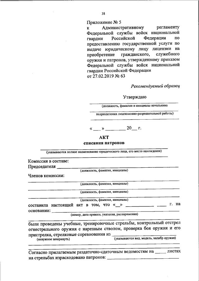 ПРИКАЗ Росгвардии от 27.02.2019 N 63