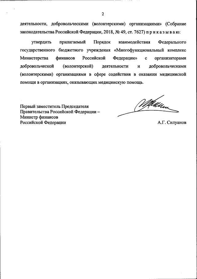 "ОБ УТВЕРЖДЕНИИ ПОРЯДКА ВЗАИМОДЕЙСТВИЯ ФЕДЕРАЛЬНОГО ГОСУДАРСТВЕННОГО БЮДЖЕТНОГО УЧРЕЖДЕНИЯ "МНОГОФУНКЦИОНАЛЬНЫЙ КОМПЛЕКС МИНИСТЕРСТВА ФИНАНСОВ РОССИЙСКОЙ ФЕДЕРАЦИИ" С ОРГАНИЗАТОРАМИ ДОБРОВОЛЬЧЕСКОЙ (ВОЛОНТЕРСКОЙ) ДЕЯТЕЛЬНОСТИ И ДОБРОВОЛЬЧЕСКИМИ (ВОЛОНТЕРСКИМИ) ОРГАНИЗАЦИЯМИ В СФЕРЕ СОДЕЙСТВИЯ В ОКАЗАНИИ МЕДИЦИНСКОЙ ПОМОЩИ В ОРГАНИЗАЦИЯХ, ОКАЗЫВАЮЩИХ МЕДИЦИНСКУЮ ПОМОЩЬ"