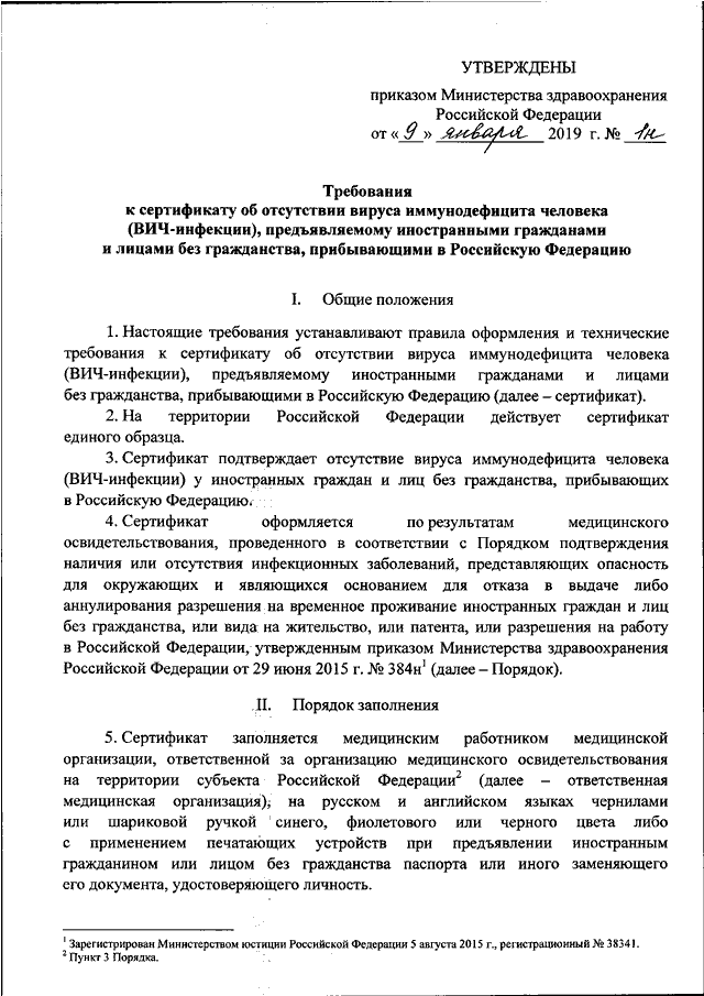 ПРИКАЗ Минздрава РФ от 09.01.2019 N 1н