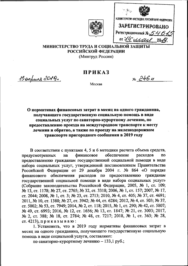 ПРИКАЗ Минтруда РФ от 15.04.2019 N 246н