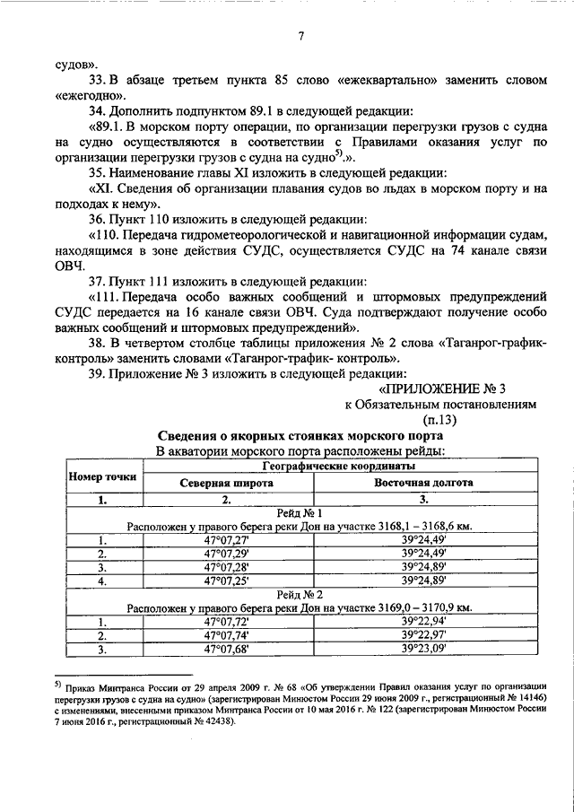 "О ВНЕСЕНИИ ИЗМЕНЕНИЙ В ОБЯЗАТЕЛЬНЫЕ ПОСТАНОВЛЕНИЯ В МОРСКОМ ПОРТУ