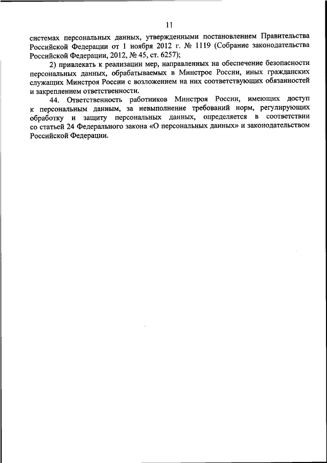 (вместе с "ПРАВИЛАМИ ОСУЩЕСТВЛЕНИЯ ВНУТРЕННЕГО КОНТРОЛЯ СООТВЕТСТВИЯ ОБРАБОТКИ ПЕРСОНАЛЬНЫХ ДАННЫХ ТРЕБОВАНИЯМ К ЗАЩИТЕ ПЕРСОНАЛЬНЫХ ДАННЫХ, УСТАНОВЛЕННЫМ ФЕДЕРАЛЬНЫМ ЗАКОНОМ ОТ 27 ИЮЛЯ 2006 Г. N 152-ФЗ "О ПЕРСОНАЛЬНЫХ ДАННЫХ", "ПРАВИЛАМИ РАССМОТРЕНИЯ ЗАПРОСОВ СУБЪЕКТОВ ПЕРСОНАЛЬНЫХ ДАННЫХ ИЛИ ИХ ПРЕДСТАВИТЕЛЕЙ", "ПРАВИЛАМИ РАБОТЫ С ОБЕЗЛИЧЕННЫМИ ДАННЫМИ В СЛУЧАЕ ОБЕЗЛИЧИВАНИЯ ПЕРСОНАЛЬНЫХ ДАННЫХ В МИНИСТЕРСТВЕ СТРОИТЕЛЬСТВА И ЖИЛИЩНО - КОММУНАЛЬНОГО ХОЗЯЙСТВА РОССИЙСКОЙ ФЕДЕРАЦИИ") (Зарегистрировано в Минюсте РФ 17.05.2019 N 54651)