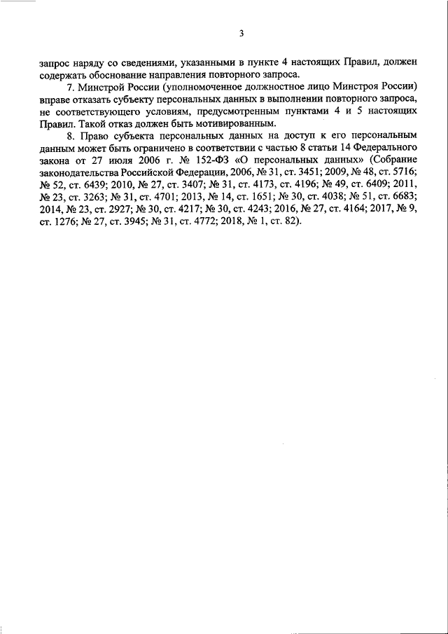 (вместе с "ПРАВИЛАМИ ОСУЩЕСТВЛЕНИЯ ВНУТРЕННЕГО КОНТРОЛЯ СООТВЕТСТВИЯ ОБРАБОТКИ ПЕРСОНАЛЬНЫХ ДАННЫХ ТРЕБОВАНИЯМ К ЗАЩИТЕ ПЕРСОНАЛЬНЫХ ДАННЫХ, УСТАНОВЛЕННЫМ ФЕДЕРАЛЬНЫМ ЗАКОНОМ ОТ 27 ИЮЛЯ 2006 Г. N 152-ФЗ "О ПЕРСОНАЛЬНЫХ ДАННЫХ", "ПРАВИЛАМИ РАССМОТРЕНИЯ ЗАПРОСОВ СУБЪЕКТОВ ПЕРСОНАЛЬНЫХ ДАННЫХ ИЛИ ИХ ПРЕДСТАВИТЕЛЕЙ", "ПРАВИЛАМИ РАБОТЫ С ОБЕЗЛИЧЕННЫМИ ДАННЫМИ В СЛУЧАЕ ОБЕЗЛИЧИВАНИЯ ПЕРСОНАЛЬНЫХ ДАННЫХ В МИНИСТЕРСТВЕ СТРОИТЕЛЬСТВА И ЖИЛИЩНО - КОММУНАЛЬНОГО ХОЗЯЙСТВА РОССИЙСКОЙ ФЕДЕРАЦИИ") (Зарегистрировано в Минюсте РФ 17.05.2019 N 54651)