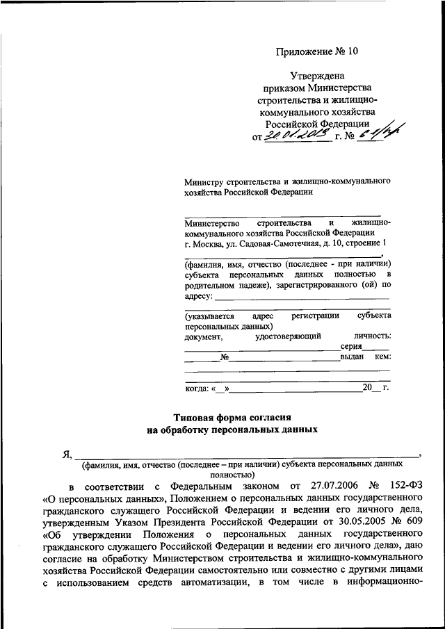(вместе с "ПРАВИЛАМИ ОСУЩЕСТВЛЕНИЯ ВНУТРЕННЕГО КОНТРОЛЯ СООТВЕТСТВИЯ ОБРАБОТКИ ПЕРСОНАЛЬНЫХ ДАННЫХ ТРЕБОВАНИЯМ К ЗАЩИТЕ ПЕРСОНАЛЬНЫХ ДАННЫХ, УСТАНОВЛЕННЫМ ФЕДЕРАЛЬНЫМ ЗАКОНОМ ОТ 27 ИЮЛЯ 2006 Г. N 152-ФЗ "О ПЕРСОНАЛЬНЫХ ДАННЫХ", "ПРАВИЛАМИ РАССМОТРЕНИЯ ЗАПРОСОВ СУБЪЕКТОВ ПЕРСОНАЛЬНЫХ ДАННЫХ ИЛИ ИХ ПРЕДСТАВИТЕЛЕЙ", "ПРАВИЛАМИ РАБОТЫ С ОБЕЗЛИЧЕННЫМИ ДАННЫМИ В СЛУЧАЕ ОБЕЗЛИЧИВАНИЯ ПЕРСОНАЛЬНЫХ ДАННЫХ В МИНИСТЕРСТВЕ СТРОИТЕЛЬСТВА И ЖИЛИЩНО - КОММУНАЛЬНОГО ХОЗЯЙСТВА РОССИЙСКОЙ ФЕДЕРАЦИИ") (Зарегистрировано в Минюсте РФ 17.05.2019 N 54651)