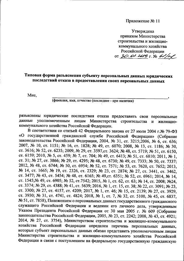 (вместе с "ПРАВИЛАМИ ОСУЩЕСТВЛЕНИЯ ВНУТРЕННЕГО КОНТРОЛЯ СООТВЕТСТВИЯ ОБРАБОТКИ ПЕРСОНАЛЬНЫХ ДАННЫХ ТРЕБОВАНИЯМ К ЗАЩИТЕ ПЕРСОНАЛЬНЫХ ДАННЫХ, УСТАНОВЛЕННЫМ ФЕДЕРАЛЬНЫМ ЗАКОНОМ ОТ 27 ИЮЛЯ 2006 Г. N 152-ФЗ "О ПЕРСОНАЛЬНЫХ ДАННЫХ", "ПРАВИЛАМИ РАССМОТРЕНИЯ ЗАПРОСОВ СУБЪЕКТОВ ПЕРСОНАЛЬНЫХ ДАННЫХ ИЛИ ИХ ПРЕДСТАВИТЕЛЕЙ", "ПРАВИЛАМИ РАБОТЫ С ОБЕЗЛИЧЕННЫМИ ДАННЫМИ В СЛУЧАЕ ОБЕЗЛИЧИВАНИЯ ПЕРСОНАЛЬНЫХ ДАННЫХ В МИНИСТЕРСТВЕ СТРОИТЕЛЬСТВА И ЖИЛИЩНО - КОММУНАЛЬНОГО ХОЗЯЙСТВА РОССИЙСКОЙ ФЕДЕРАЦИИ") (Зарегистрировано в Минюсте РФ 17.05.2019 N 54651)