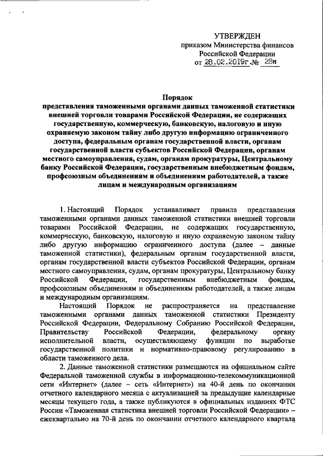 ПРИКАЗ Минфина РФ от 28.02.2019 N 28н