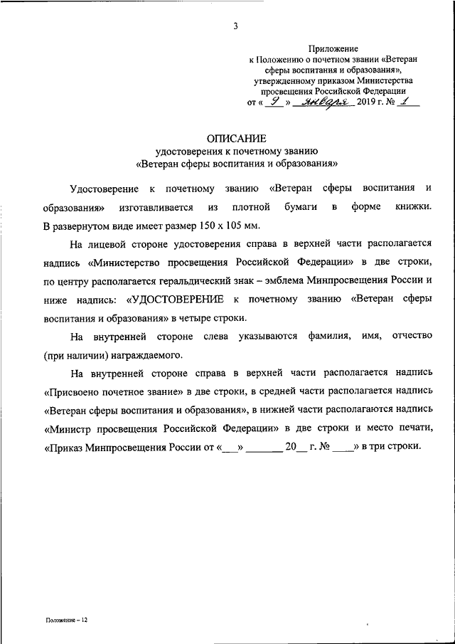 ПРИКАЗ Минпросвещения России от 09.01.2019 N 1
