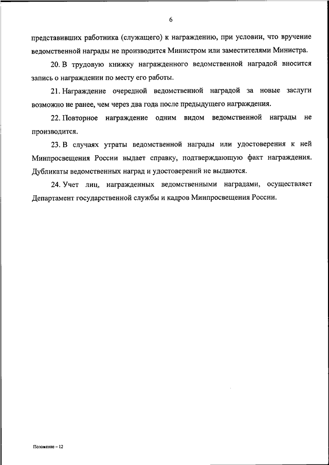 "О ВЕДОМСТВЕННЫХ НАГРАДАХ МИНИСТЕРСТВА ПРОСВЕЩЕНИЯ РОССИЙСКОЙ ФЕДЕРАЦИИ"