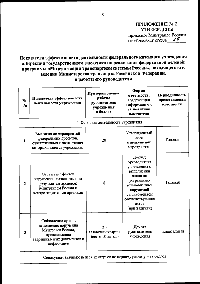 "ОБ УТВЕРЖДЕНИИ ПОКАЗАТЕЛЕЙ ЭФФЕКТИВНОСТИ ДЕЯТЕЛЬНОСТИ ФЕДЕРАЛЬНЫХ БЮДЖЕТНЫХ, АВТОНОМНЫХ И КАЗЕННЫХ УЧРЕЖДЕНИЙ, НАХОДЯЩИХСЯ В ВЕДЕНИИ МИНИСТЕРСТВА ТРАНСПОРТА РОССИЙСКОЙ ФЕДЕРАЦИИ, И РАБОТЫ ИХ РУКОВОДИТЕЛЕЙ"