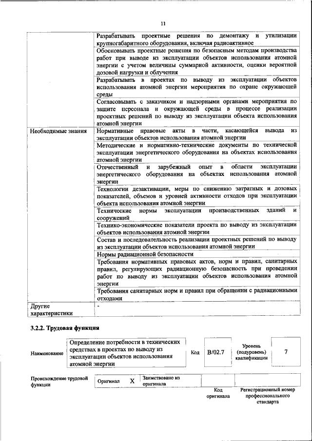 "ОБ УТВЕРЖДЕНИИ ПРОФЕССИОНАЛЬНОГО СТАНДАРТА "ИНЖЕНЕР - ПРОЕКТИРОВЩИК ПО ВЫВОДУ ИЗ ЭКСПЛУАТАЦИИ ОБЪЕКТОВ ИСПОЛЬЗОВАНИЯ АТОМНОЙ ЭНЕРГИИ"