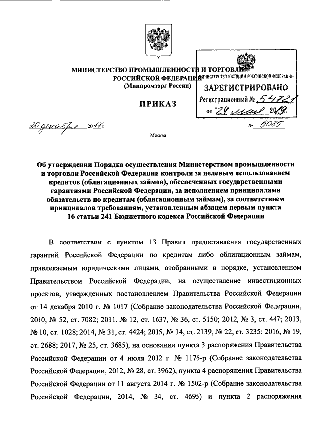 ПРИКАЗ Минпромторга РФ от 20.12.2018 N 5085