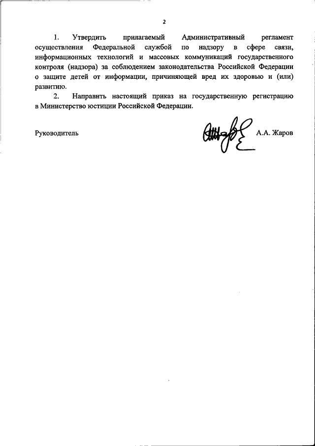 "ОБ УТВЕРЖДЕНИИ АДМИНИСТРАТИВНОГО РЕГЛАМЕНТА ОСУЩЕСТВЛЕНИЯ ФЕДЕРАЛЬНОЙ СЛУЖБОЙ ПО НАДЗОРУ В СФЕРЕ СВЯЗИ, ИНФОРМАЦИОННЫХ ТЕХНОЛОГИЙ И МАССОВЫХ КОММУНИКАЦИЙ ГОСУДАРСТВЕННОГО КОНТРОЛЯ (НАДЗОРА) ЗА СОБЛЮДЕНИЕМ ЗАКОНОДАТЕЛЬСТВА РОССИЙСКОЙ ФЕДЕРАЦИИ О ЗАЩИТЕ ДЕТЕЙ ОТ ИНФОРМАЦИИ, ПРИЧИНЯЮЩЕЙ ВРЕД ИХ ЗДОРОВЬЮ И (ИЛИ) РАЗВИТИЮ"