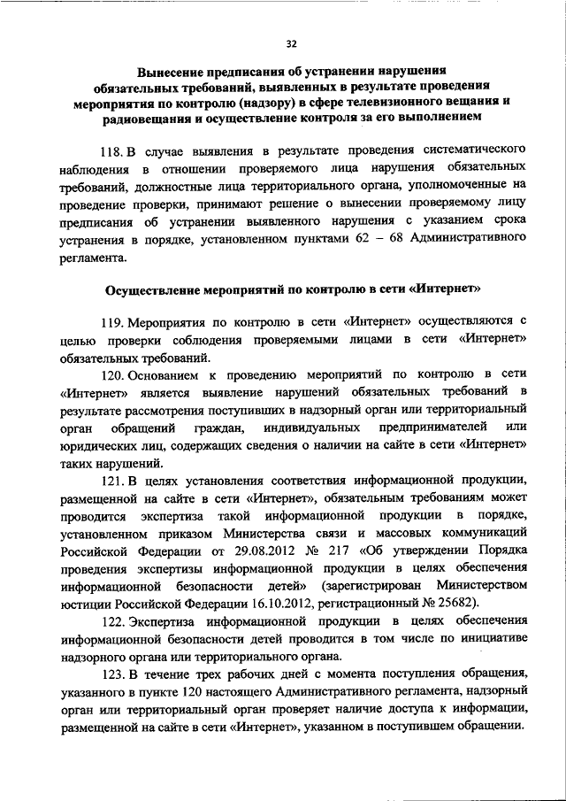 "ОБ УТВЕРЖДЕНИИ АДМИНИСТРАТИВНОГО РЕГЛАМЕНТА ОСУЩЕСТВЛЕНИЯ ФЕДЕРАЛЬНОЙ СЛУЖБОЙ ПО НАДЗОРУ В СФЕРЕ СВЯЗИ, ИНФОРМАЦИОННЫХ ТЕХНОЛОГИЙ И МАССОВЫХ КОММУНИКАЦИЙ ГОСУДАРСТВЕННОГО КОНТРОЛЯ (НАДЗОРА) ЗА СОБЛЮДЕНИЕМ ЗАКОНОДАТЕЛЬСТВА РОССИЙСКОЙ ФЕДЕРАЦИИ О ЗАЩИТЕ ДЕТЕЙ ОТ ИНФОРМАЦИИ, ПРИЧИНЯЮЩЕЙ ВРЕД ИХ ЗДОРОВЬЮ И (ИЛИ) РАЗВИТИЮ"