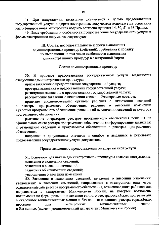 "ОБ УТВЕРЖДЕНИИ АДМИНИСТРАТИВНОГО РЕГЛАМЕНТА ПРЕДОСТАВЛЕНИЯ МИНИСТЕРСТВОМ ЦИФРОВОГО РАЗВИТИЯ, СВЯЗИ И МАССОВЫХ КОММУНИКАЦИЙ РОССИЙСКОЙ ФЕДЕРАЦИИ ГОСУДАРСТВЕННОЙ УСЛУГИ ПО ФОРМИРОВАНИЮ И ВЕДЕНИЮ ЕДИНОГО РЕЕСТРА РОССИЙСКИХ ПРОГРАММ ДЛЯ ЭЛЕКТРОННЫХ ВЫЧИСЛИТЕЛЬНЫХ МАШИН И БАЗ ДАННЫХ И ЕДИНОГО РЕЕСТРА ЕВРАЗИЙСКИХ ПРОГРАММ ДЛЯ ЭЛЕКТРОННЫХ ВЫЧИСЛИТЕЛЬНЫХ МАШИН И БАЗ ДАННЫХ"