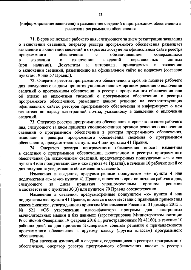 "ОБ УТВЕРЖДЕНИИ АДМИНИСТРАТИВНОГО РЕГЛАМЕНТА ПРЕДОСТАВЛЕНИЯ МИНИСТЕРСТВОМ ЦИФРОВОГО РАЗВИТИЯ, СВЯЗИ И МАССОВЫХ КОММУНИКАЦИЙ РОССИЙСКОЙ ФЕДЕРАЦИИ ГОСУДАРСТВЕННОЙ УСЛУГИ ПО ФОРМИРОВАНИЮ И ВЕДЕНИЮ ЕДИНОГО РЕЕСТРА РОССИЙСКИХ ПРОГРАММ ДЛЯ ЭЛЕКТРОННЫХ ВЫЧИСЛИТЕЛЬНЫХ МАШИН И БАЗ ДАННЫХ И ЕДИНОГО РЕЕСТРА ЕВРАЗИЙСКИХ ПРОГРАММ ДЛЯ ЭЛЕКТРОННЫХ ВЫЧИСЛИТЕЛЬНЫХ МАШИН И БАЗ ДАННЫХ"
