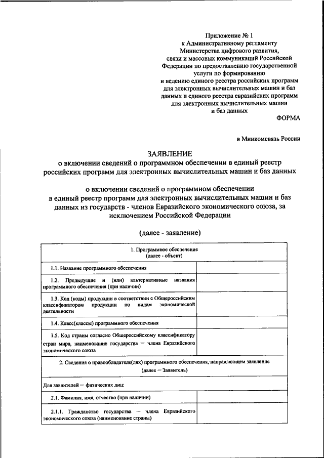 "ОБ УТВЕРЖДЕНИИ АДМИНИСТРАТИВНОГО РЕГЛАМЕНТА ПРЕДОСТАВЛЕНИЯ МИНИСТЕРСТВОМ ЦИФРОВОГО РАЗВИТИЯ, СВЯЗИ И МАССОВЫХ КОММУНИКАЦИЙ РОССИЙСКОЙ ФЕДЕРАЦИИ ГОСУДАРСТВЕННОЙ УСЛУГИ ПО ФОРМИРОВАНИЮ И ВЕДЕНИЮ ЕДИНОГО РЕЕСТРА РОССИЙСКИХ ПРОГРАММ ДЛЯ ЭЛЕКТРОННЫХ ВЫЧИСЛИТЕЛЬНЫХ МАШИН И БАЗ ДАННЫХ И ЕДИНОГО РЕЕСТРА ЕВРАЗИЙСКИХ ПРОГРАММ ДЛЯ ЭЛЕКТРОННЫХ ВЫЧИСЛИТЕЛЬНЫХ МАШИН И БАЗ ДАННЫХ"