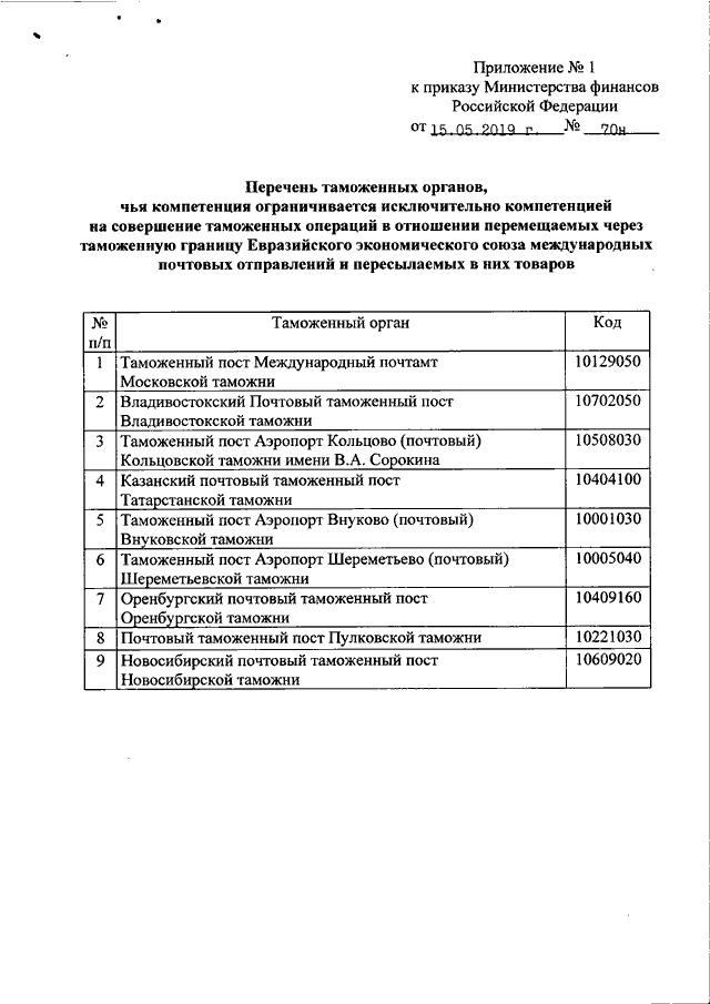 ПРИКАЗ Минфина РФ от 15.05.2019 N 70н