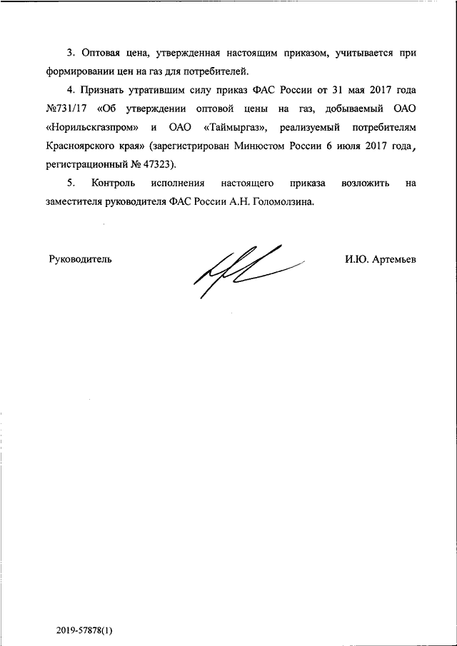 ПРИКАЗ Федеральной антимонопольной службы от 31.05.2019 N 707/19