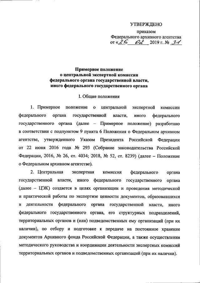 ПРИКАЗ Росархива от 25.02.2019 N 31