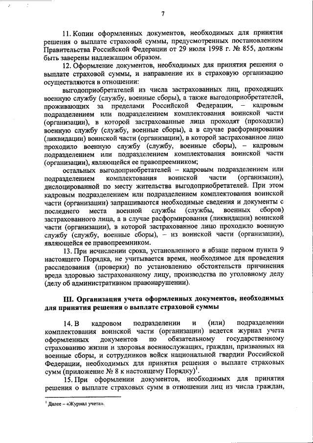 "ОБ УТВЕРЖДЕНИИ ПОРЯДКА ОРГАНИЗАЦИИ РАБОТЫ ПО ОБЯЗАТЕЛЬНОМУ ГОСУДАРСТВЕННОМУ СТРАХОВАНИЮ ЖИЗНИ И ЗДОРОВЬЯ ВОЕННОСЛУЖАЩИХ, ГРАЖДАН, ПРИЗВАННЫХ НА ВОЕННЫЕ СБОРЫ, И СОТРУДНИКОВ ВОЙСК НАЦИОНАЛЬНОЙ ГВАРДИИ РОССИЙСКОЙ ФЕДЕРАЦИИ, А ТАКЖЕ ОФОРМЛЕНИЮ И УЧЕТУ ДОКУМЕНТОВ, НЕОБХОДИМЫХ ДЛЯ ПРИНЯТИЯ РЕШЕНИЯ О ВЫПЛАТЕ СТРАХОВОЙ СУММЫ"