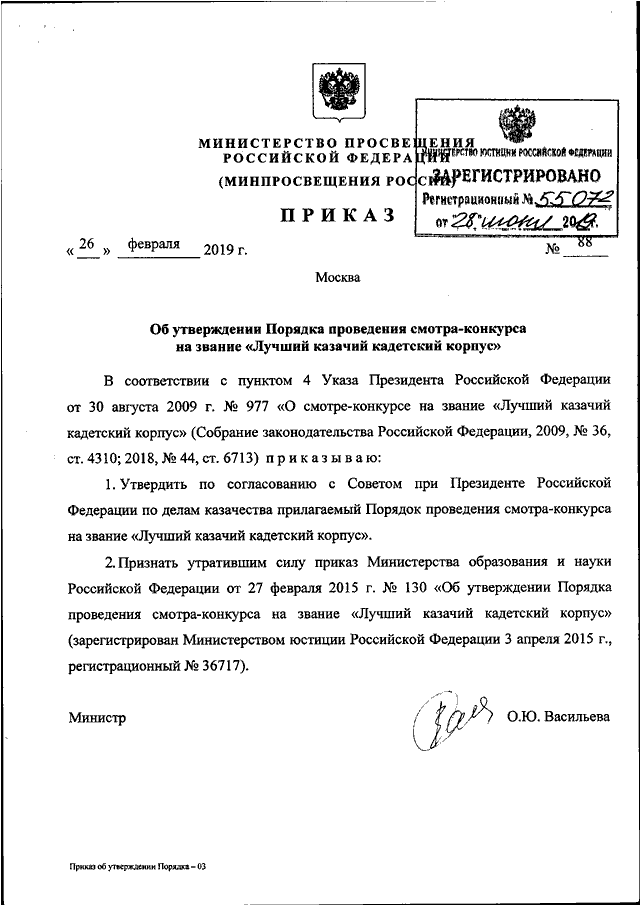 ПРИКАЗ Минпросвещения России от 26.02.2019 N 88