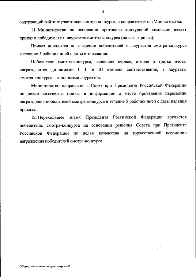 "ОБ УТВЕРЖДЕНИИ ПОРЯДКА ПРОВЕДЕНИЯ СМОТРА - КОНКУРСА НА ЗВАНИЕ "ЛУЧШИЙ КАЗАЧИЙ КАДЕТСКИЙ КОРПУС"