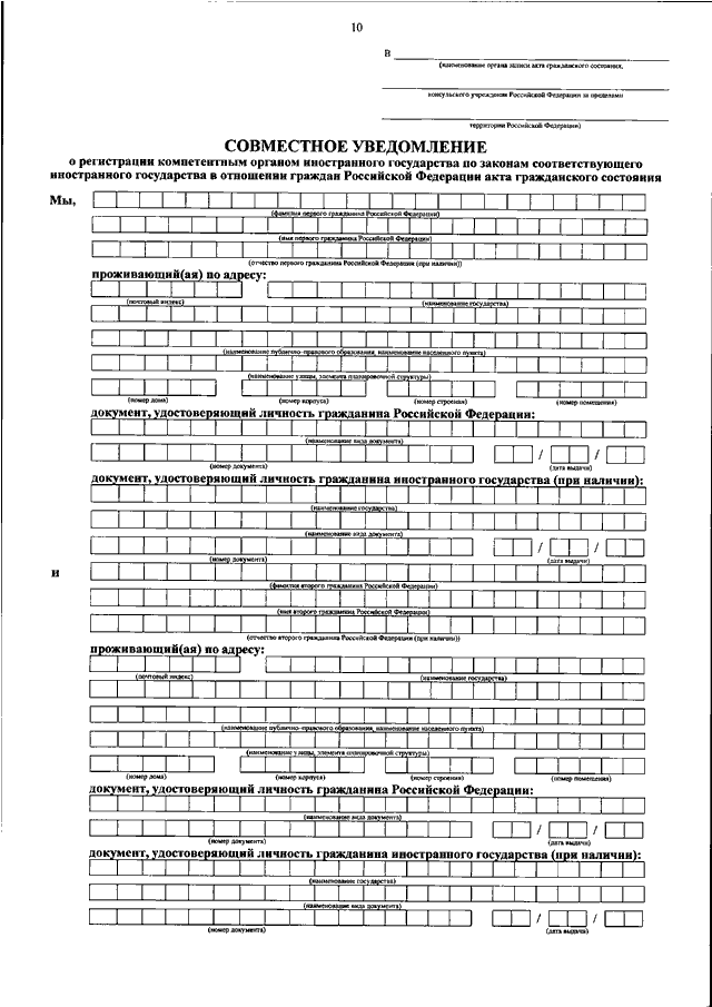 "О ФОРМАХ УВЕДОМЛЕНИЙ О РЕГИСТРАЦИИ КОМПЕТЕНТНЫМ ОРГАНОМ ИНОСТРАННОГО ГОСУДАРСТВА ПО ЗАКОНАМ СООТВЕТСТВУЮЩЕГО ИНОСТРАННОГО ГОСУДАРСТВА В ОТНОШЕНИИ ГРАЖДАНИНА РОССИЙСКОЙ ФЕДЕРАЦИИ ИЛИ В ОТНОШЕНИИ ЕГО НЕСОВЕРШЕННОЛЕТНЕГО РЕБЕНКА, СОСТОЯЩЕГО В ГРАЖДАНСТВЕ РОССИЙСКОЙ ФЕДЕРАЦИИ, ЛИБО В ОТНОШЕНИИ НЕ ДОСТИГШЕГО 18 ЛЕТ ИЛИ ОГРАНИЧЕННОГО В ДЕЕСПОСОБНОСТИ ГРАЖДАНИНА РОССИЙСКОЙ ФЕДЕРАЦИИ, ЗАКОННЫМ ПРЕДСТАВИТЕЛЕМ КОТОРОГО ГРАЖДАНИН РОССИЙСКОЙ ФЕДЕРАЦИИ ЯВЛЯЕТСЯ, АКТА ГРАЖДАНСКОГО СОСТОЯНИЯ, СПРАВКИ О ВКЛЮЧЕНИИ СВЕДЕНИЙ О ДОКУМЕНТЕ, ВЫДАННОМ КОМПЕТЕНТНЫМ ОРГАНОМ ИНОСТРАННОГО ГОСУДАРСТВА В УДОСТОВЕРЕНИЕ АКТА ГРАЖДАНСКОГО СОСТОЯНИЯ, СОВЕРШЕННОГО ВНЕ ПРЕДЕЛОВ ТЕРРИТОРИИ РОССИЙСКОЙ ФЕДЕРАЦИИ ПО ЗАКОНАМ СООТВЕТСТВУЮЩЕГО ИНОСТРАННОГО ГОСУДАРСТВА В ОТНОШЕНИИ ГРАЖДАН РОССИЙСКОЙ ФЕДЕРАЦИИ, И УВЕДОМЛЕНИЯ ОБ ОТКАЗЕ В ИХ ВКЛЮЧЕНИИ В ЕДИНЫЙ ГОСУДАРСТВЕННЫЙ РЕЕСТР ЗАПИСЕЙ АКТОВ ГРАЖДАНСКОГО СОСТОЯНИЯ"
