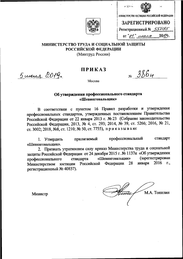 ПРИКАЗ Минтруда РФ от 05.06.2019 N 386н