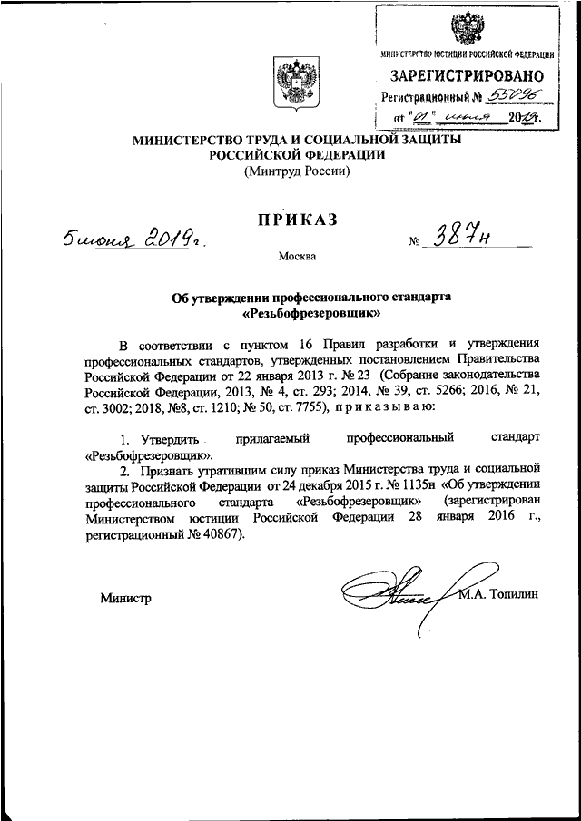 ПРИКАЗ Минтруда РФ от 05.06.2019 N 387н