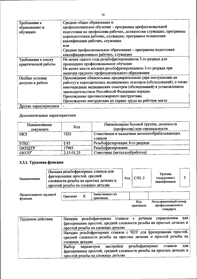 "ОБ УТВЕРЖДЕНИИ ПРОФЕССИОНАЛЬНОГО СТАНДАРТА "РЕЗЬБОФРЕЗЕРОВЩИК"