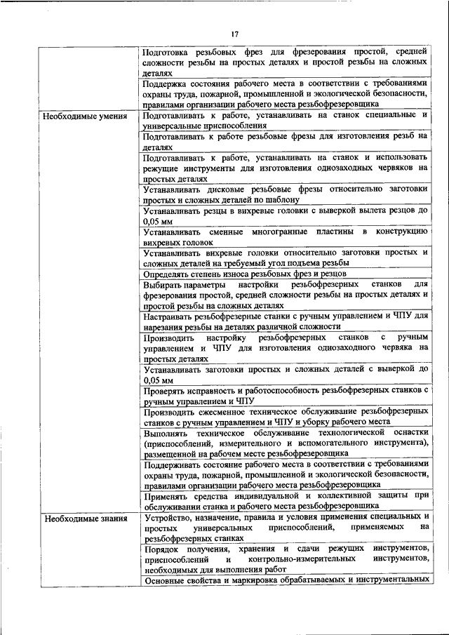 "ОБ УТВЕРЖДЕНИИ ПРОФЕССИОНАЛЬНОГО СТАНДАРТА "РЕЗЬБОФРЕЗЕРОВЩИК"