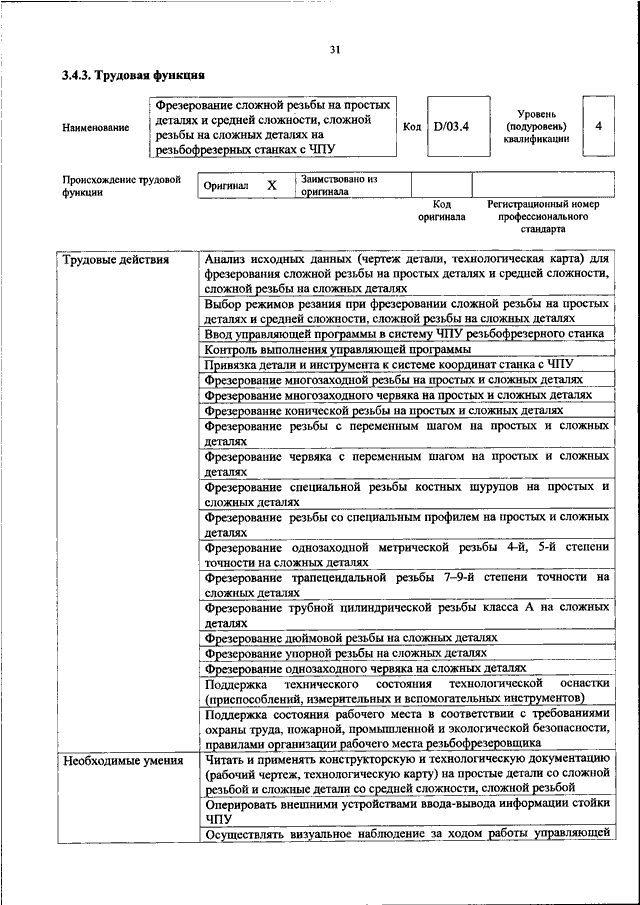 "ОБ УТВЕРЖДЕНИИ ПРОФЕССИОНАЛЬНОГО СТАНДАРТА "РЕЗЬБОФРЕЗЕРОВЩИК"