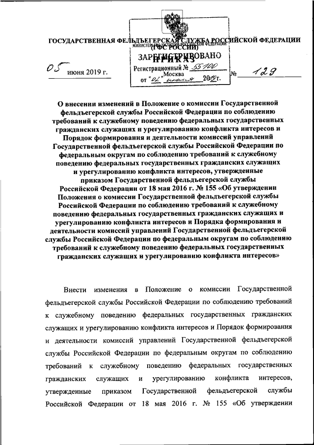 ПРИКАЗ ГФС РФ от 05.06.2019 N 129