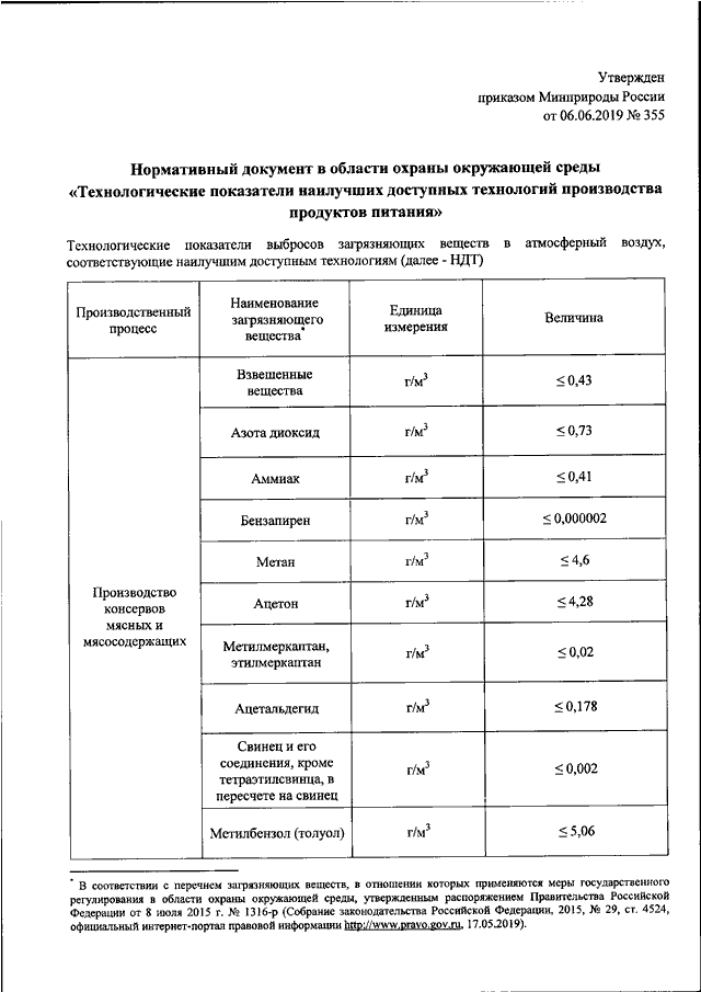 ПРИКАЗ Минприроды РФ от 06.06.2019 N 355